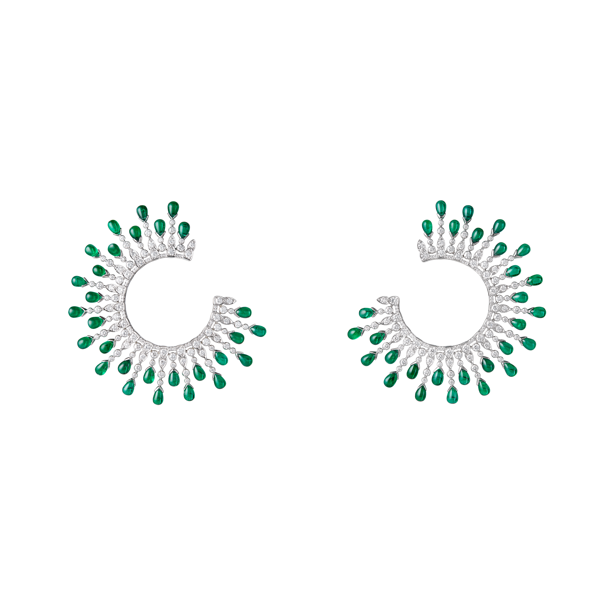 Šperky Boucheron z umělecké kolekce „Histoire de Style“ kombinují ve svém zdobení bílé diamanty se zelenými smaragdy či modrými safíry. K dostání v butiku Boucheron, Široká 124/15, Praha 1.